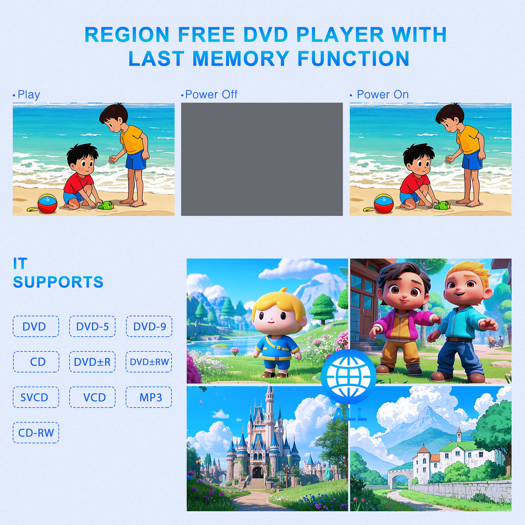 Plays dvds can have 2 dvds at same time or both play the same dvd using one player but shown on both screens.