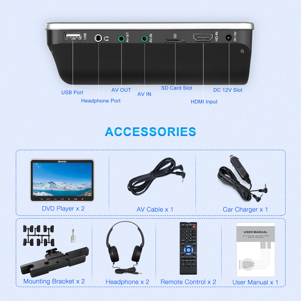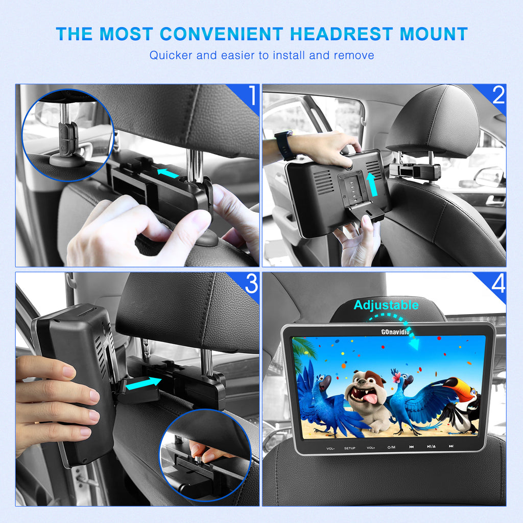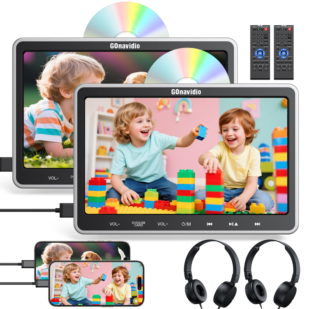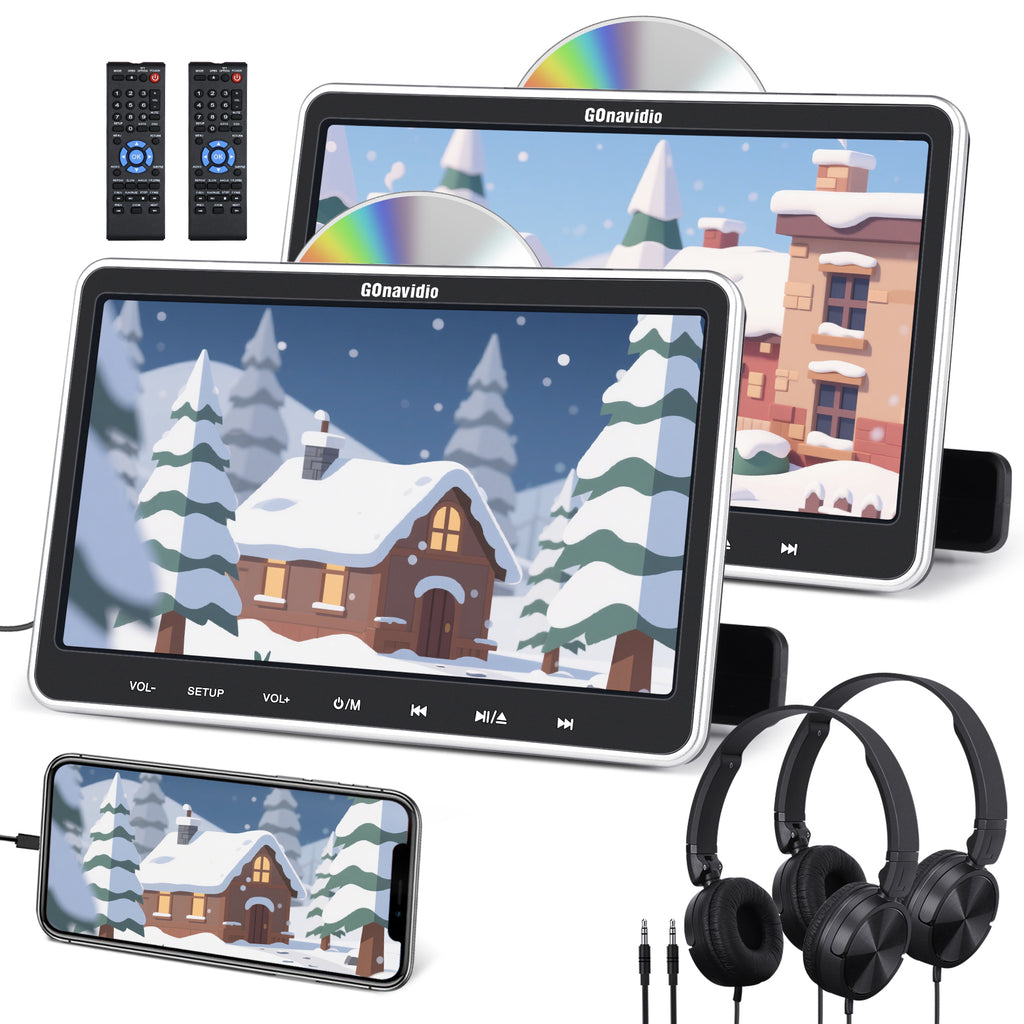 GOnavidio 10.1 Inch Dual Car DVD Player Headrest Monitors with 2 Headphones and 2 Mounting Bracket