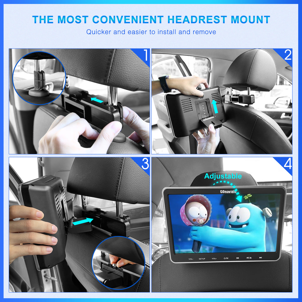 10.1'' Car Seat Headrest DVD Player Inhalation Headrest TV with HDMI Input and Mounting Bracket Support USB/SD Region Free Last Momory